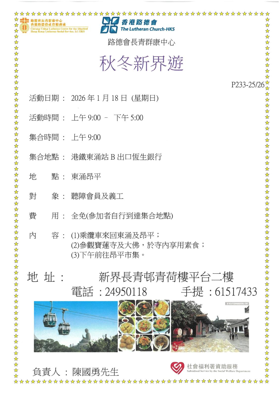 活動內容更改:2026年1月18日 秋冬新界遊
