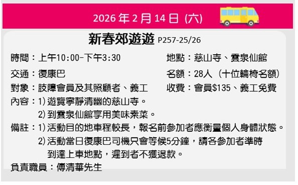 活動內容更改:原定2026年2月8日「親親大熊貓」取消,改為2月14日「新春郊遊遊」